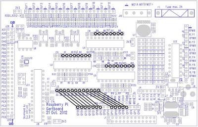 socket that connects the Gertboard to the Raspberry Pi. J19, at the top of the board (right of centre) is